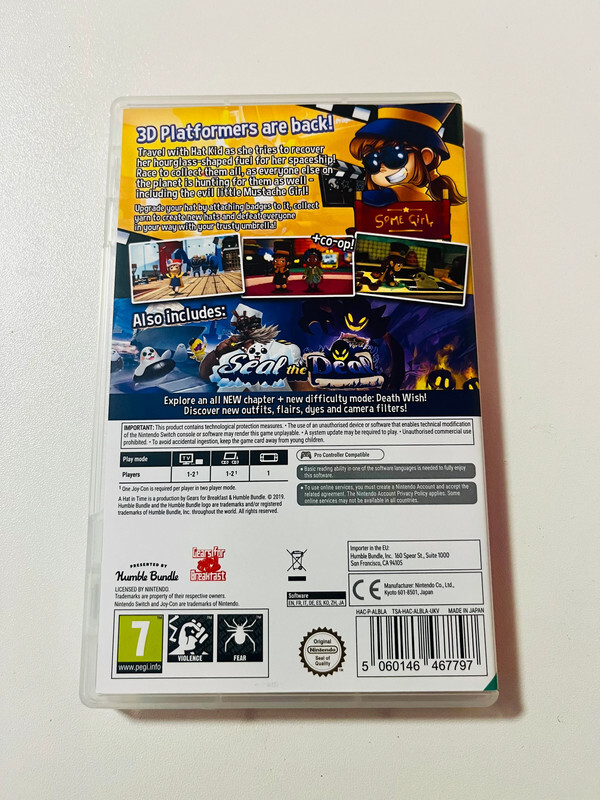 Immerse yourself in the whimsical world of A Hat in Time, a charming video game for the Nintendo Switch console. Join the main character, Hat Kid, on a fun-filled adventure through various levels and collect magical hats to gain new abilities. With its colorful graphics and catchy soundtrack, this game is perfect for all ages. Explore different worlds and encounter entertaining characters while playing A Hat in Time. Don't miss out on the fun - add this game to your Nintendo Switch collection today!