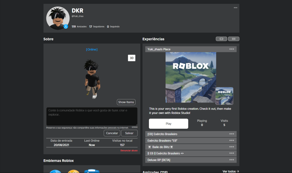 A data de entrada da conta é de 20/08/2021, conta com muitos itens para desfrutarem, muitos gamepass em diversos jogos e muitos jogos já upados. O nome da conta é Yuki_zhaa vou deixar o inventário visível para todos. Se estiver interessado peço que contacte-me.