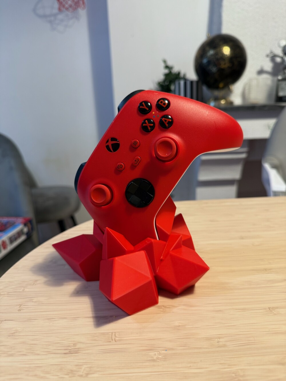 Suporte para comando com design moderno, em formato de cristal.