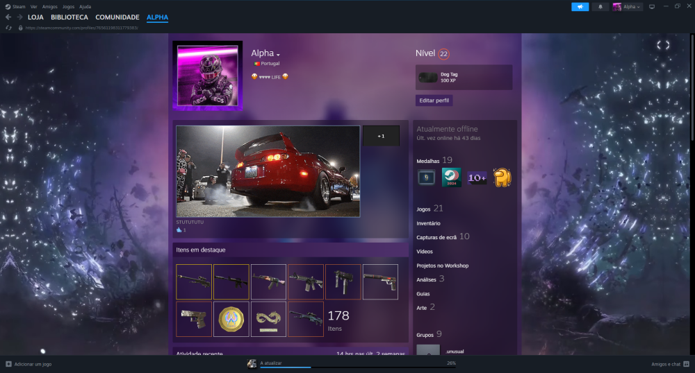 Conta com inventário de CS2 no valor de mais ou menos 50euros.