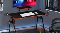 Os jogos eletrônicos de alto desempenho precisam de uma secretária de qualidade. Esta mesa de jogo HOMCOM é uma escolha muito boa. Com um gancho para os fone de ouvido, grades para colocar os alto-falantes em ambos os lados, um porta-copos e uma prateleira de monitor, oferece a máxima comodidade em todos os momentos para que você possa desfrutar da melhor experiência de jogo. A prateleira mantém o monitor elevado e reduz a fadiga de cabeça e pescoço